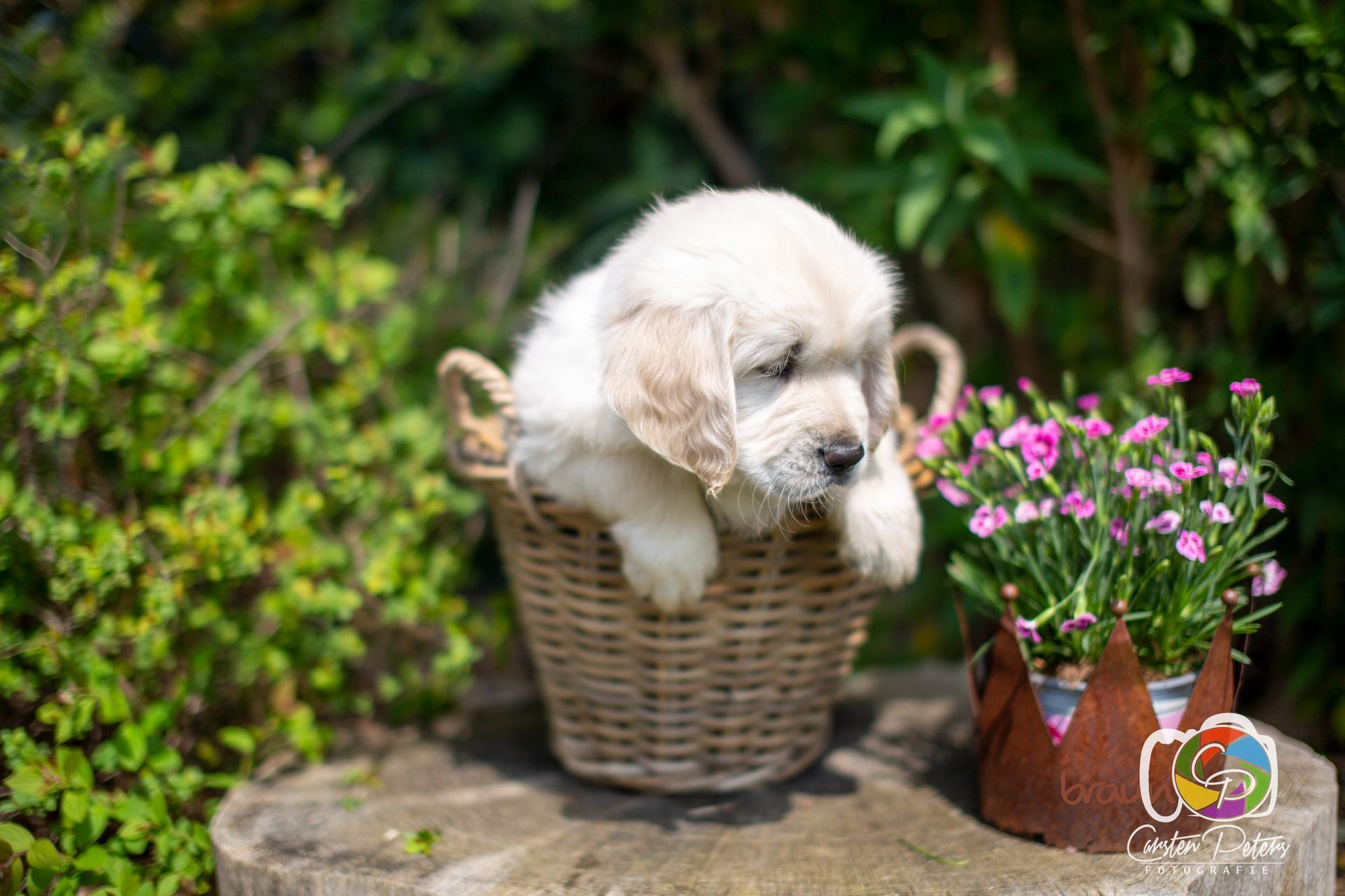 Trotz der Corona Pandemi geht es ja irgendwie weiter, jetzt kommt das schöne Wetter wieder und man kann wieder mehr aus an die Luft. Was gibt es da nichts schöneres als ein Welpen Shooting. Und dieses hatte ich mit Charlotte's Golden (http://www.charlottes-golden.de/). Wie immer hat es mit den Kleinen super viel Spaß gemacht. Denn hier läuft nichts so wie man es gerne hätte, aber das macht es auch so toll.