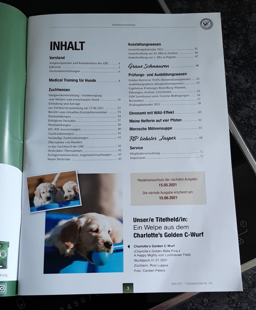 Mein Dank geht auch an die Züchterin Rosi Luppus, dank Ihr sind auch Bilder in der Züchterzeitung zu sehen auch als Titelbild :-).